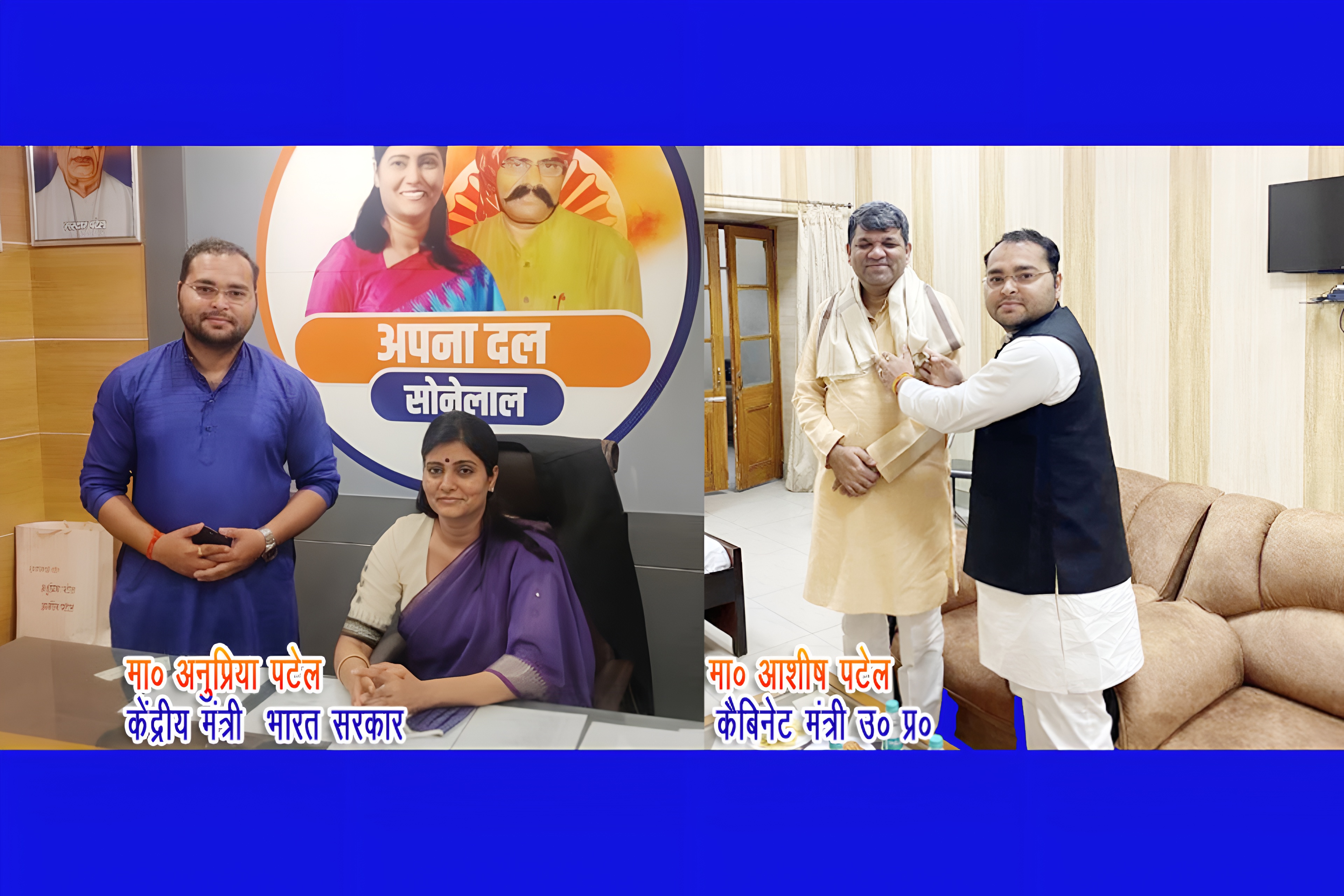 आशीष सिंह अपना दल एस दिनांक 15-7-25 को अपना दल एस कैंप कार्यालय लखनऊ में माननीय कैबिनेट मंत्री उत्तर प्रदेश सरकार श्री आशीष पटेल जी, माननीय प्रदेश अध्यक्ष श्री आर पी गौतम जी एवं माननीय राष्ट्रीय कोषाध्यक्ष व दर्जा प्राप्त राज्य मंत्री श्री ओ पी कटियार जी के साथ शिष्टाचार भेंट करने का अवसर प्राप्त हुआ साथ में पार्टी के सभी सम्मानित पदाधिकारीयो से मुलाकात की